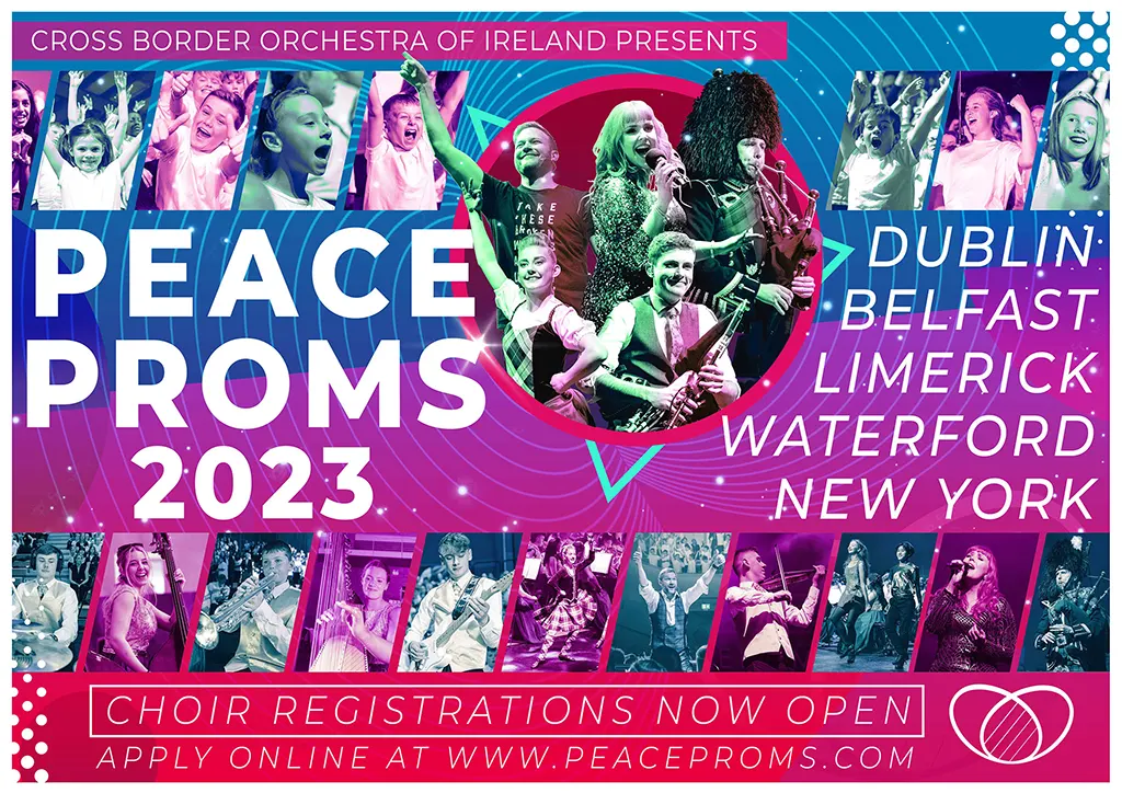 We are delighted to announce that Peace Proms 2023 will take place in Dublin, Belfast, Limerick, Waterford and New York. Schools can now complete their ‘Registration of Interest’ online HERE Peace Proms is a FREE music
